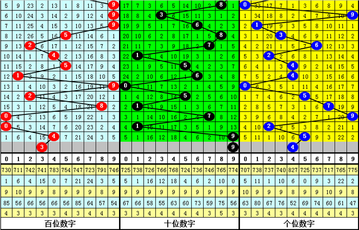上期第二位奖号为:9,间隔13期之后开出,走势较温,前10期该位热码开出次数较少,本期注意该位热码逐渐回暖,关注号码9。
